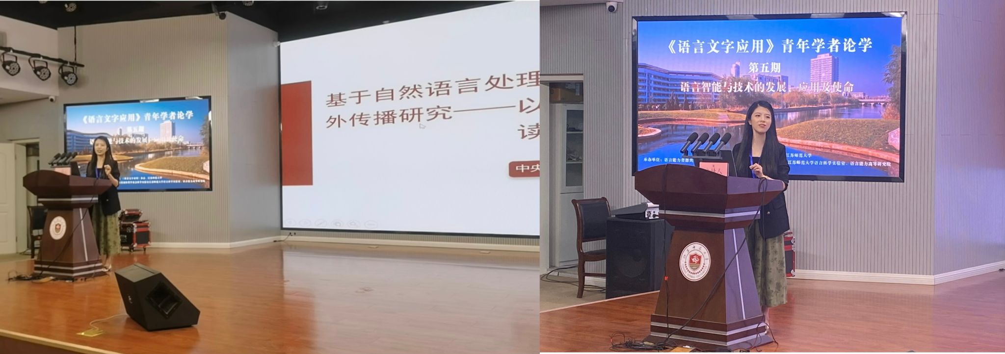 2024级博士研究生刘艺珍同学作了题为《基于自然语言处理技术的中国少数民族典籍海外传播研究——以六部<蒙古秘史>英译本的读者评价为例》的报告,并代周世豪同学报告了两人合作的研究《基于学习者体验的数字人与真人中文教师对比研究》。与会期间刘艺珍同学与本领域专家、学者展开深入对话,就语言与技术的发展发表自身见解,彰显了黑丝a片